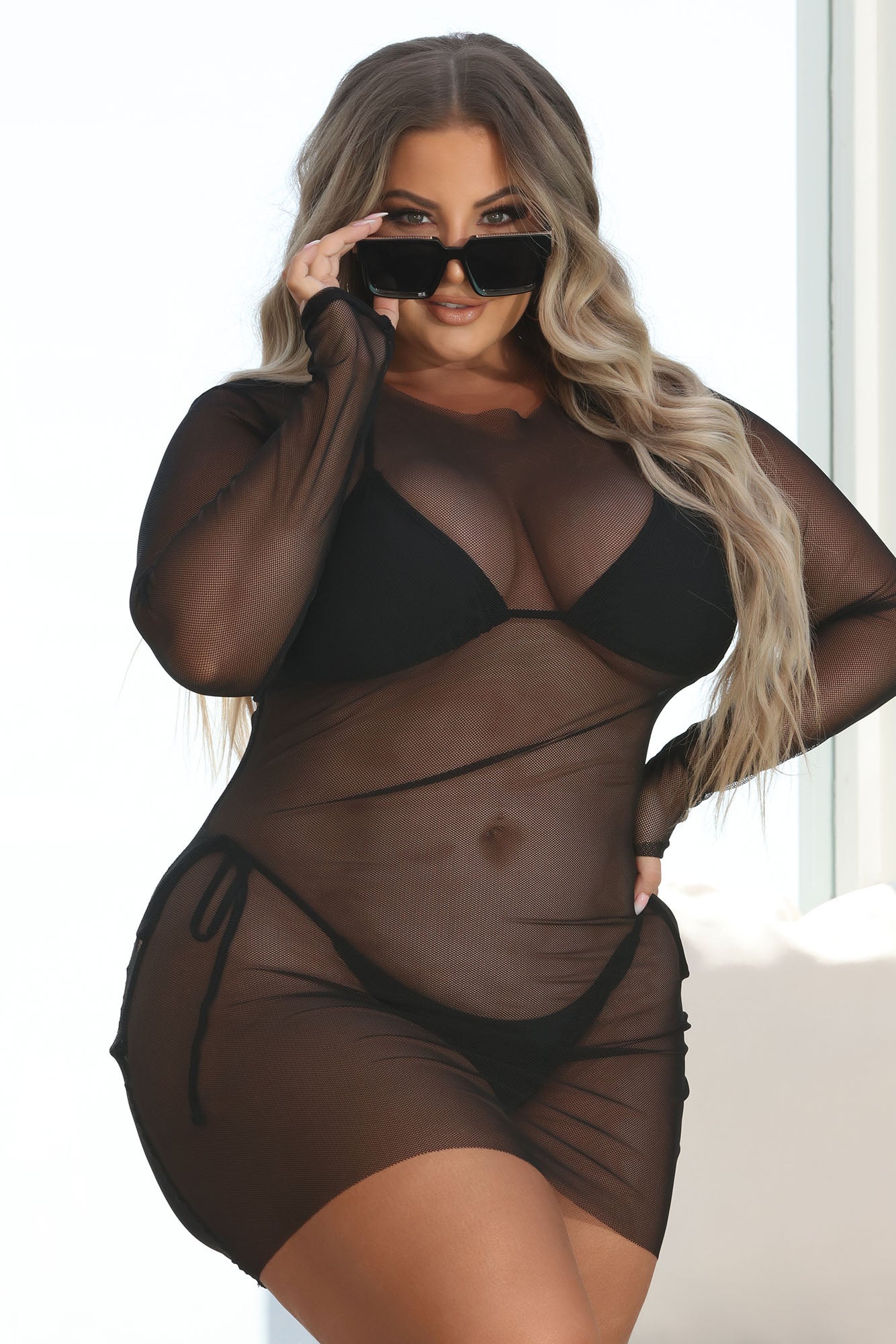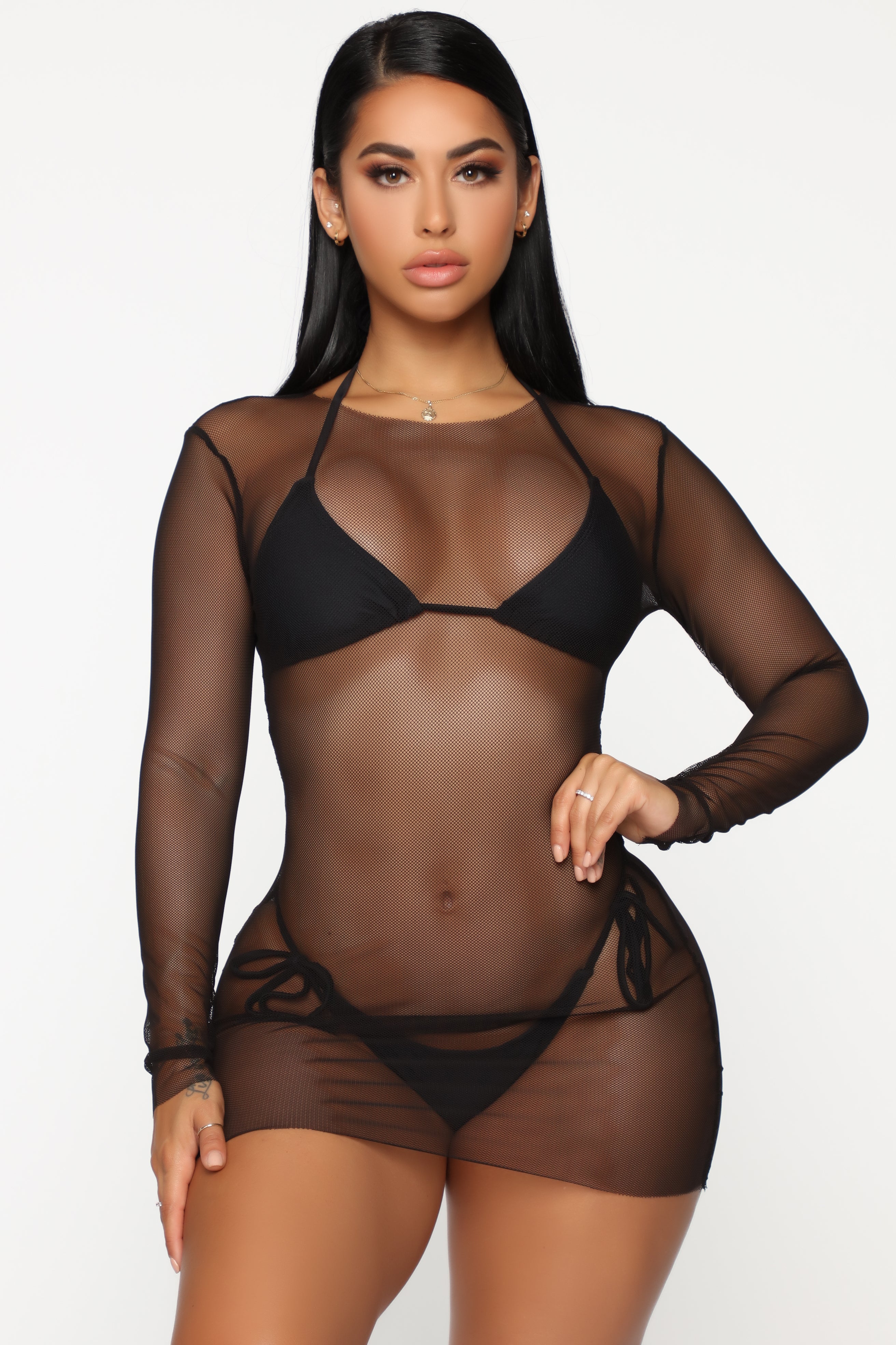 - Mesh Cover Up Mini Dress